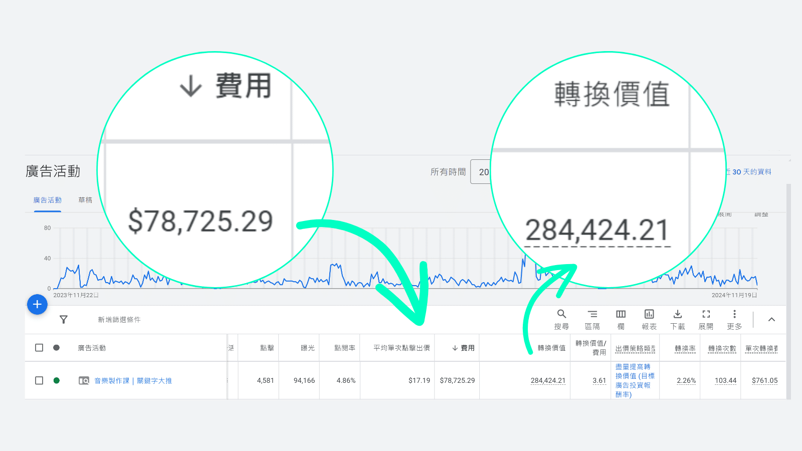 雖然只有將近4倍的投報率,沒有Meta廣告誇張,但準確的關鍵字吸引的人,變成鐵粉的機率超過80%